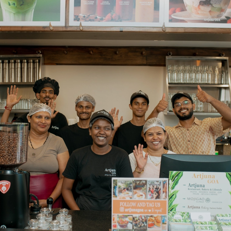 Located just below an Ayurvedic clinic and easily accessible from NH 66, Artjuna Porvorim is designed for everyday ease; whether you’re dropping in for a quick coffee, meeting friends for a casual bite, or picking up freshly baked sourdough loaves and handcrafted breads and pastries from the Artjuna Bakery on your way home.
